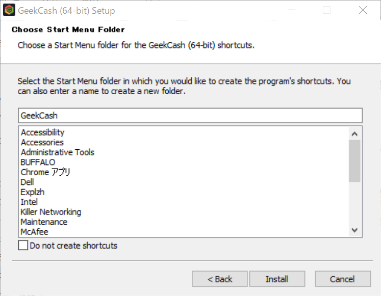 Geek Cashのウィンドウズ版クライアントは、インストール形式ですので、ダウンロードフォルダで実行しましょう。ダブルクリックで実行です。