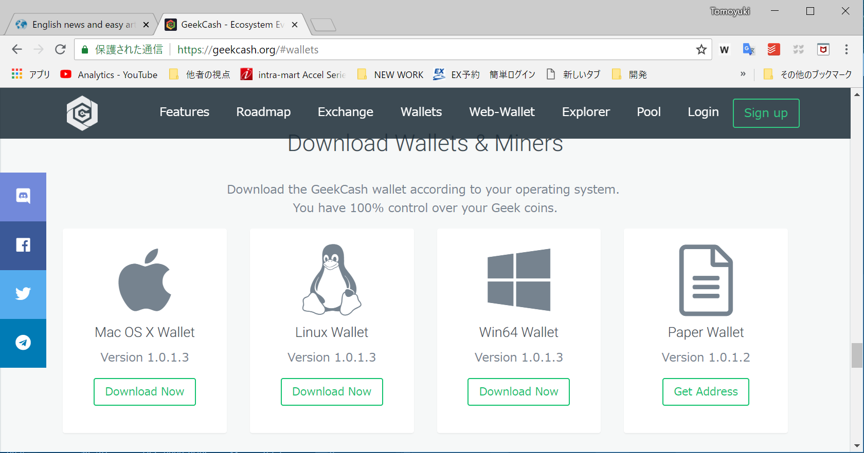 Geek CashのWEBサイトより最新版のクライアントをダウンロードします。