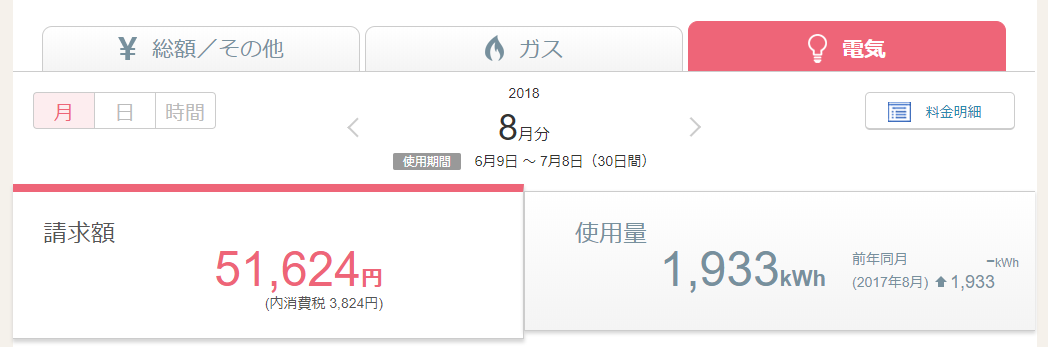 1か月の使用量 1,933kwhに対して、51,624円です。