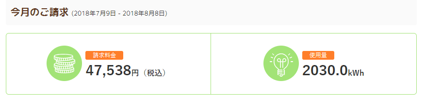 1か月の使用量 2030.0kwhに対して、47,538円です。