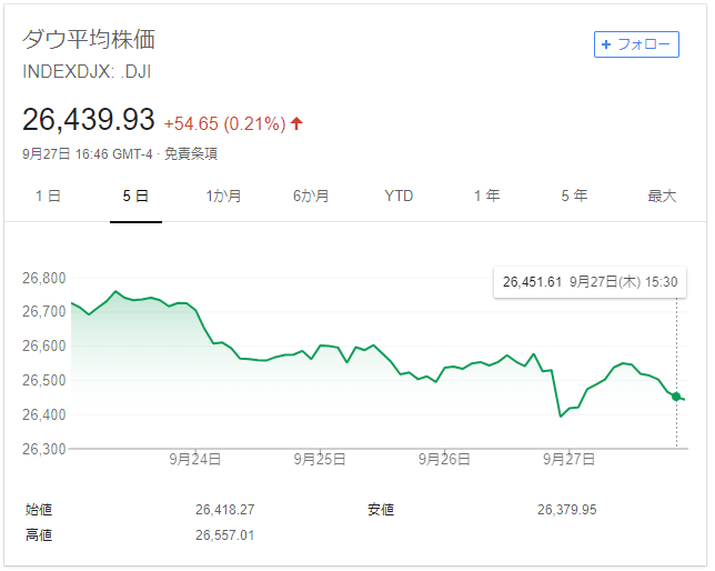 では、昨日のダウはどうだったか。