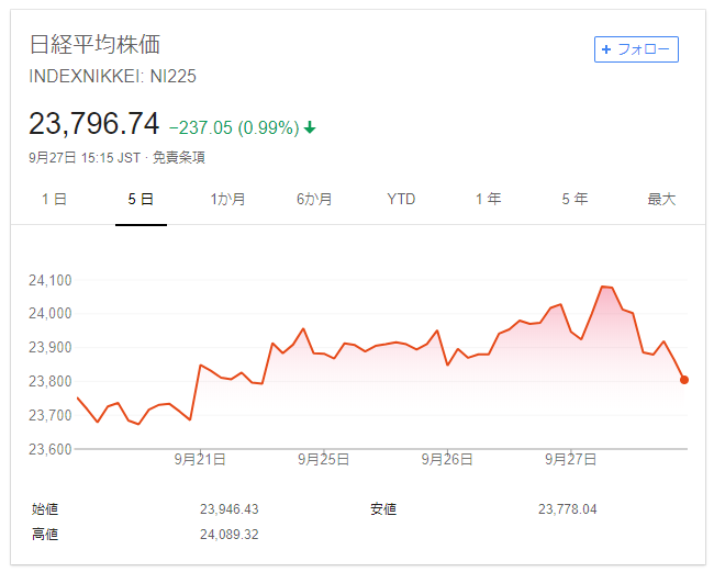 では、日経平均はどうだったか。