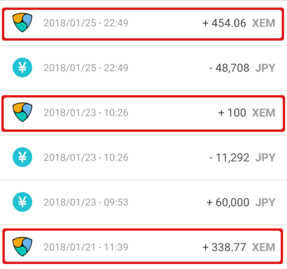 日本円6万円を銀行振込した後で、すぐに100ネム買いました