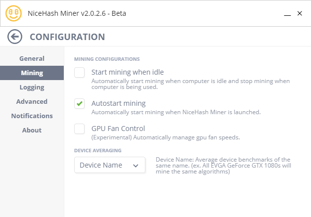Autostart mining: NMH2のクライアントを起動させてたタイミングですぐにマイニングを始めたい場合にチェックを入れます。