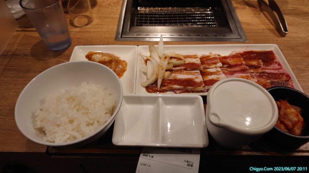 バラカルビ、豚カルビ、ホルモンで、ご飯とスープ、キムチまでついて、1380円というのは、安いと思います。