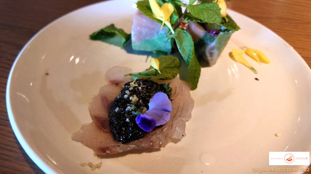 - ヒラメ 海苔 穂紫蘇 レモングラス ペッパー