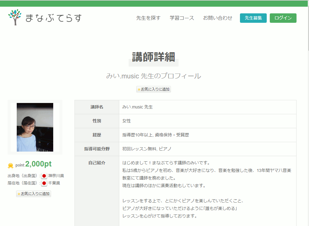 もし、皆さんの中で先生としてレッスンを行いたい場合は、登録してみるのもいいかもしれません。