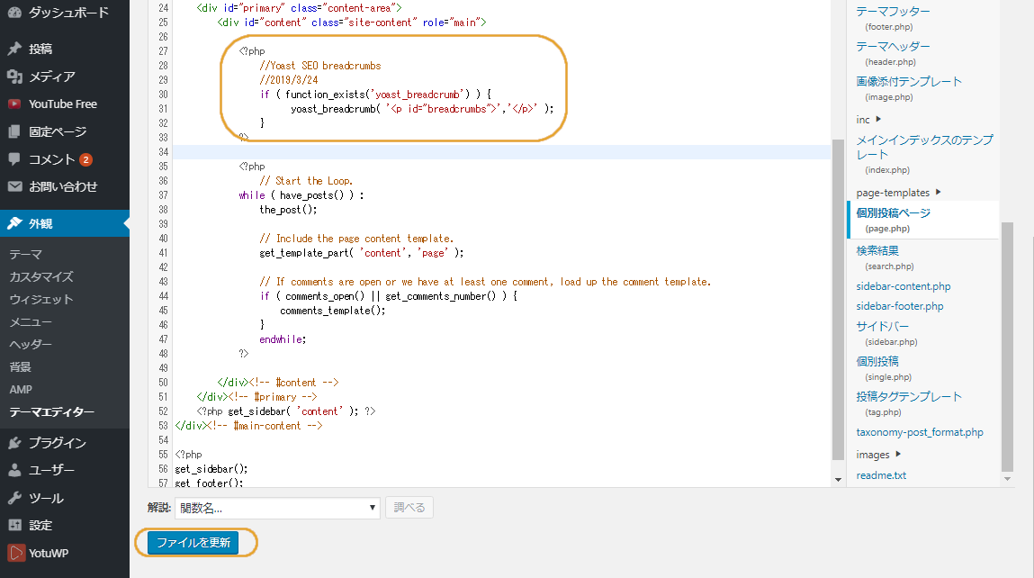 修正が完了したら、「ファイルを更新」ボタンを押して、修正を完了させます。